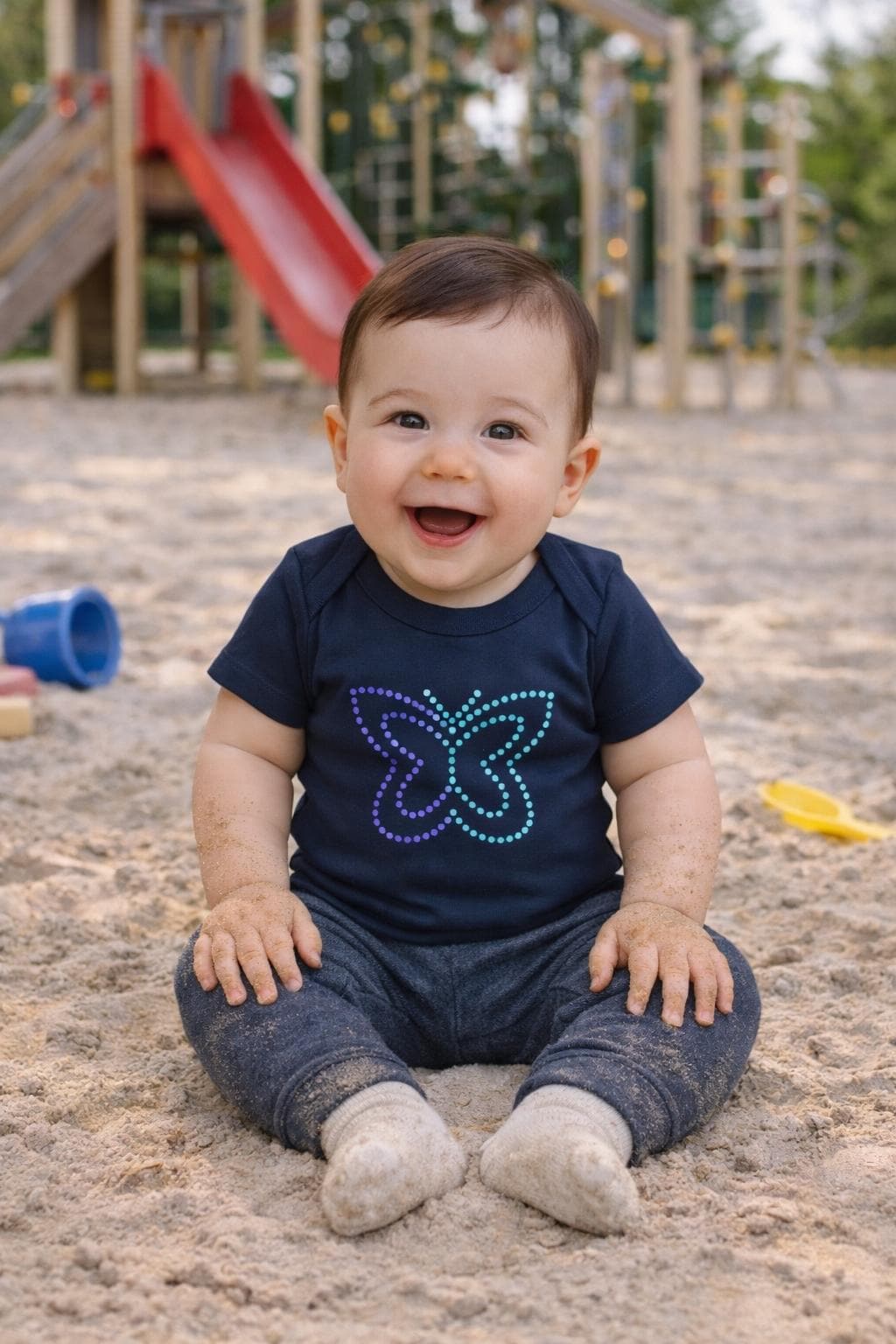 Do you know that feeling? You're looking for a gift as special and delicate as a newborn? Many baby bodysuits seem impersonal or are made of scratchy fabrics. Our butterfly bodysuit solves this problem: It combines a delicate design with the pure softness of 100% organic cotton. A true favorite that provides comfort and brightens up everyday life.