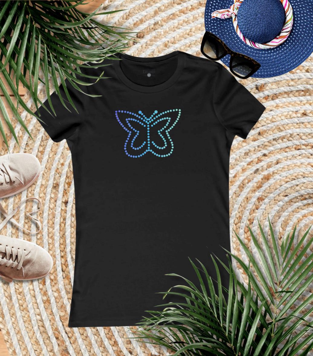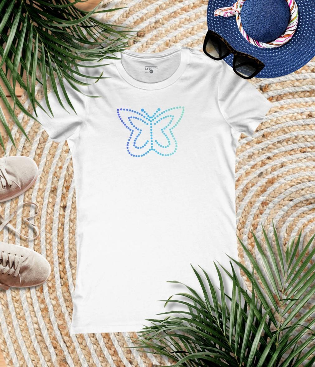 Bringen Sie frischen Wind in Ihre Garderobe mit diesem zauberhaften T-Shirt im Schmetterlingsdesign!