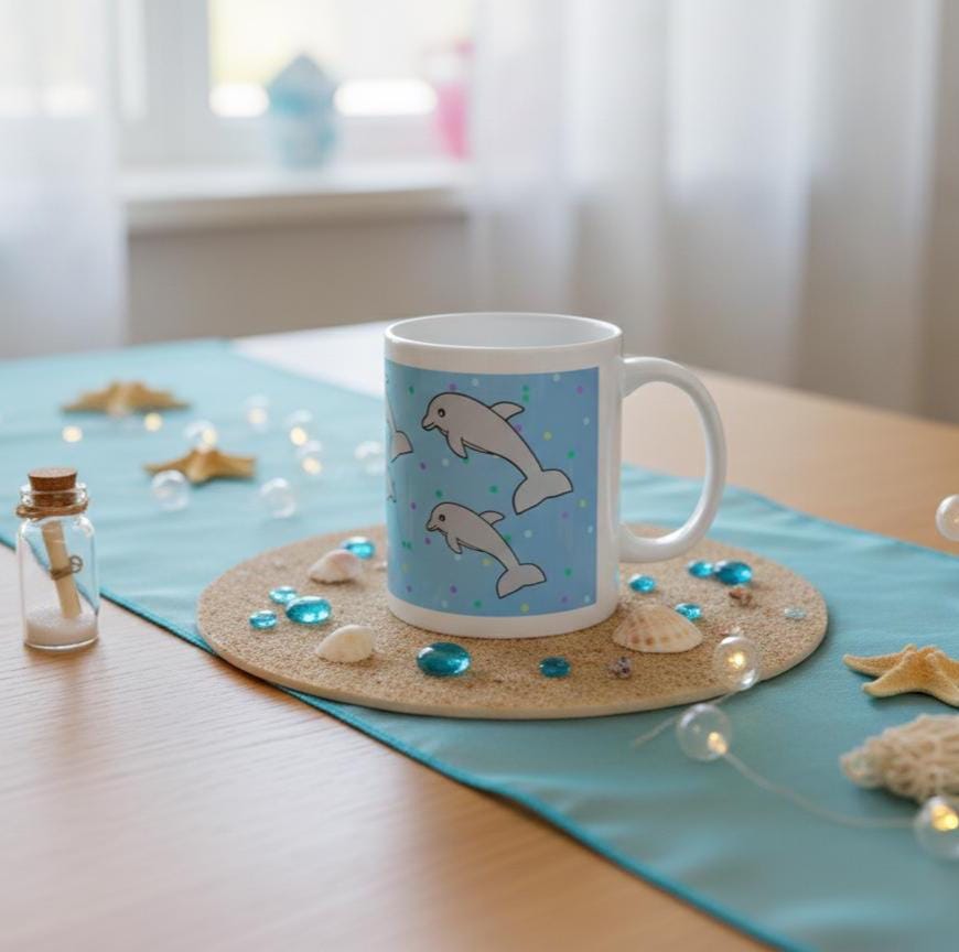 Die frĂśhliche Delfin-Illustration bringt Kinderaugen zum Leuchten und macht Wasser, Saft oder Kakao zu einem echten Erlebnis, vom FrĂźhstĂźck bis zum Abendessen.
