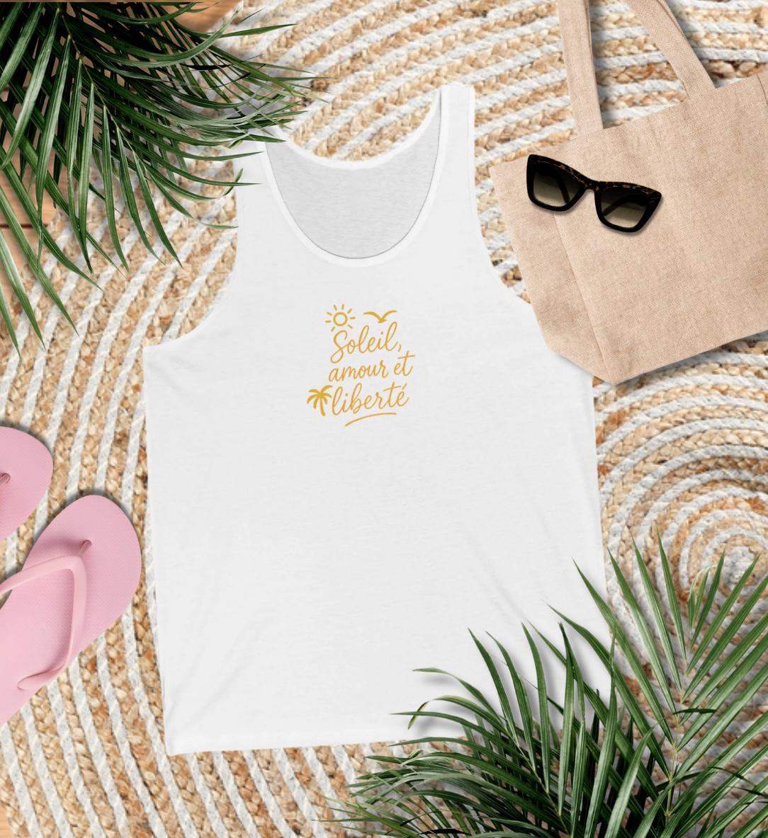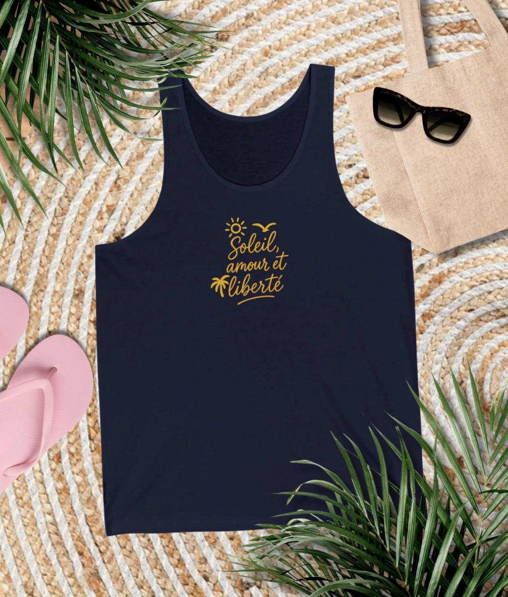 ☀️ Tanktop „Soleil, amour et liberté“ – Französische Sommerleichtigkeit zum Anziehen 🌿