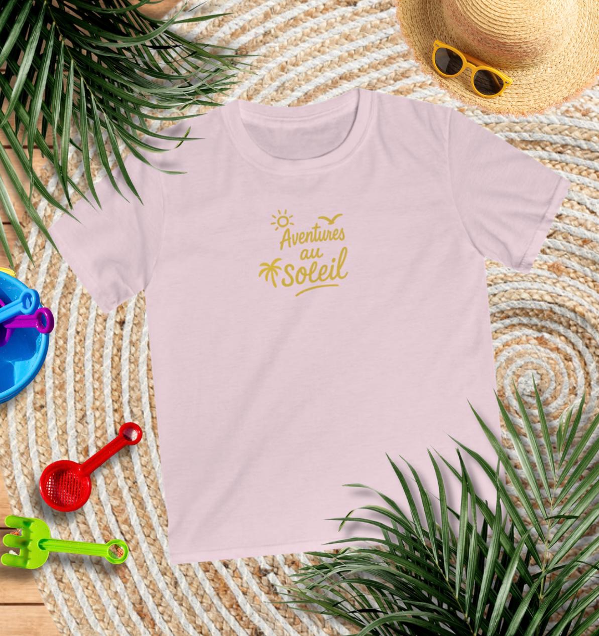 ☀️ Kinder T-Shirt „Aventures au soleil“ – Für kleine Sonnen-Abenteurer 🌿
