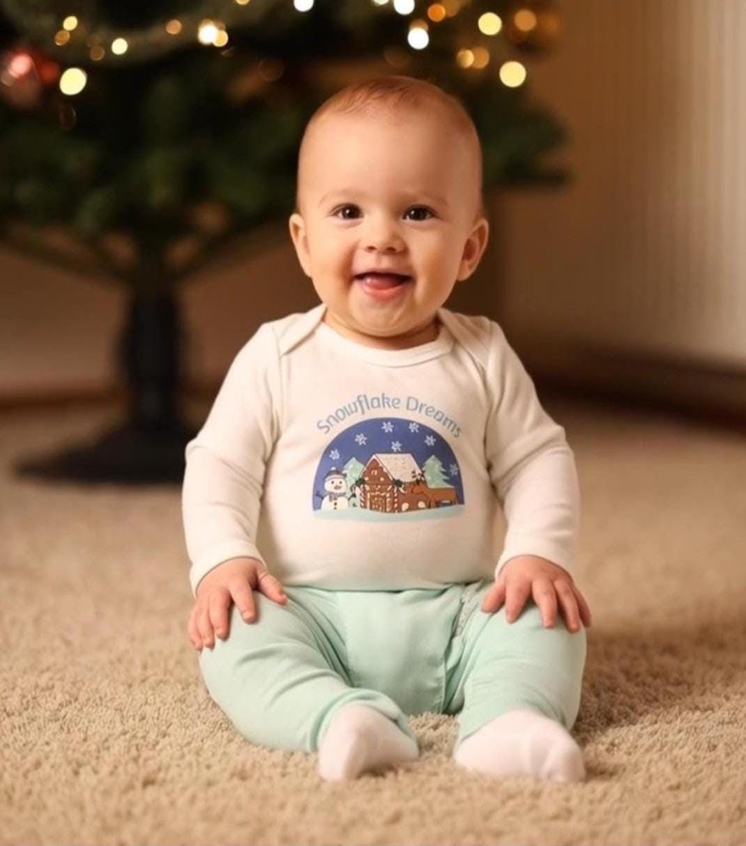 ❄️ Winter baby bodysuit – “Snowflake Dreams” for cozy winter days