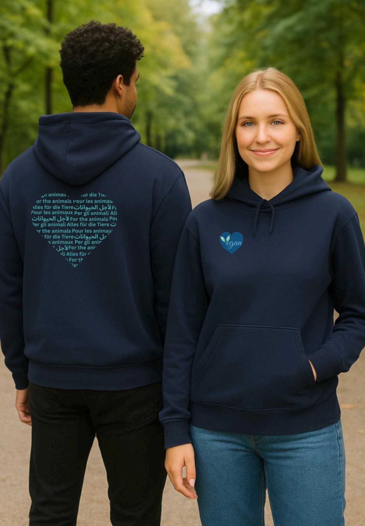 🫶 Unisex Hoodie „For the Animals“ – veganes Statement mit Herz