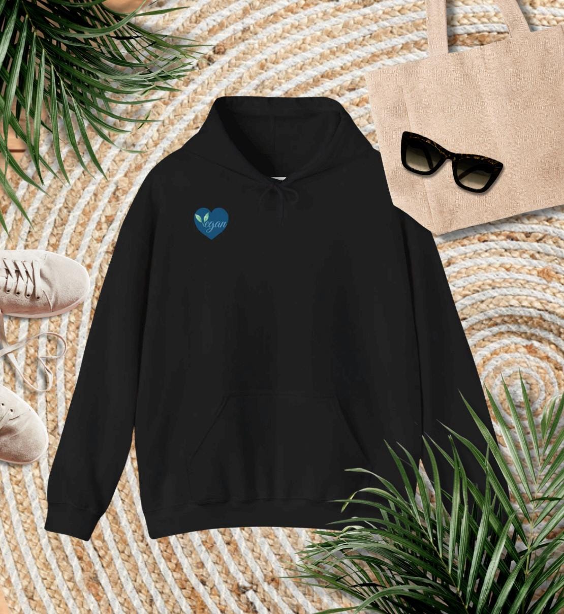 • Stilvolles Design: Herzprint auf dem Rücken + dezentes Vegan-Herz auf der Brust