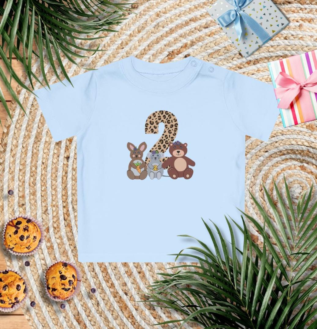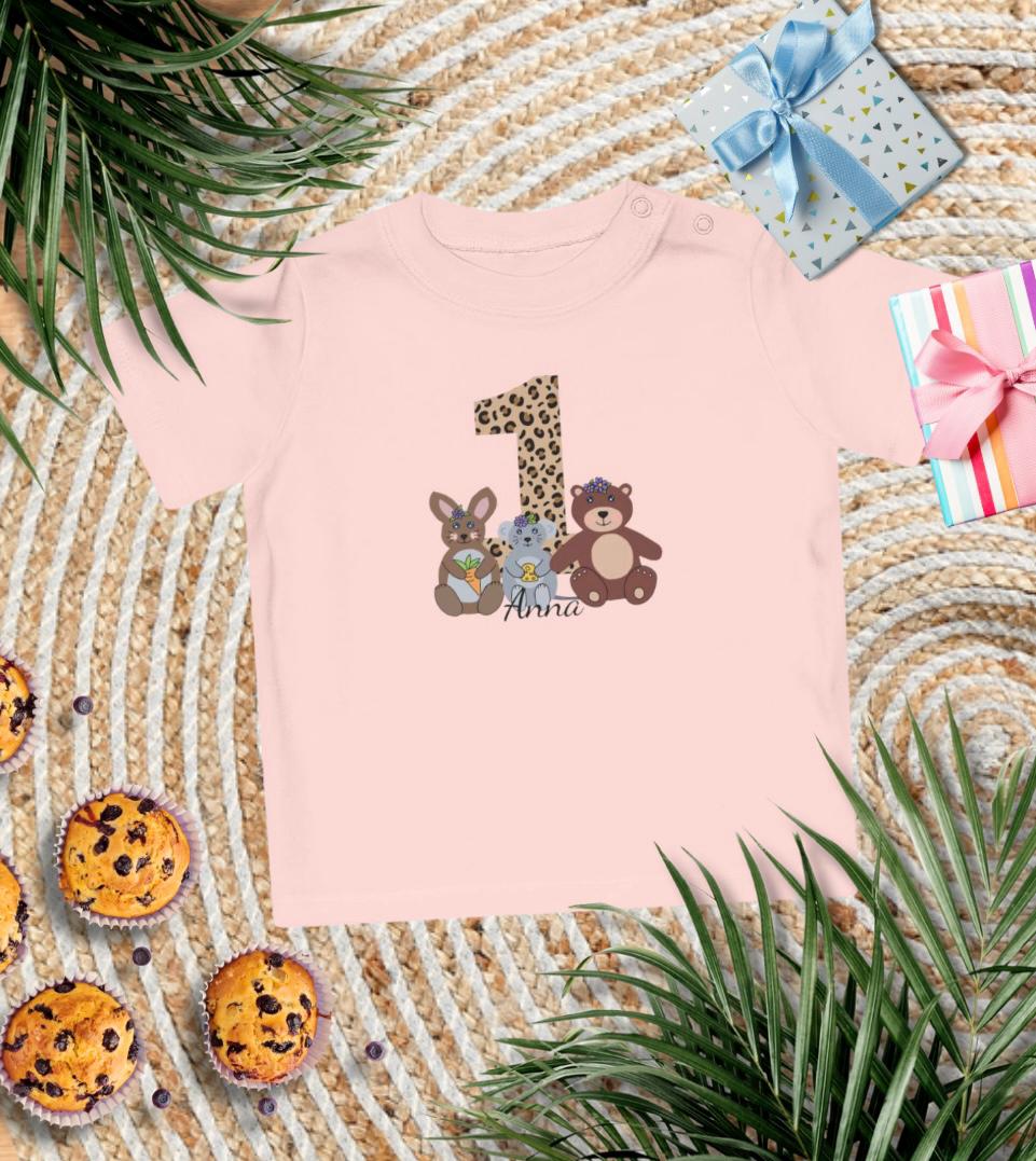 🎉 Personalisierbares Geburtstags-T-Shirt – Liebevolles Design mit Tieren & Leopardenprint 🐻🐭🐰
