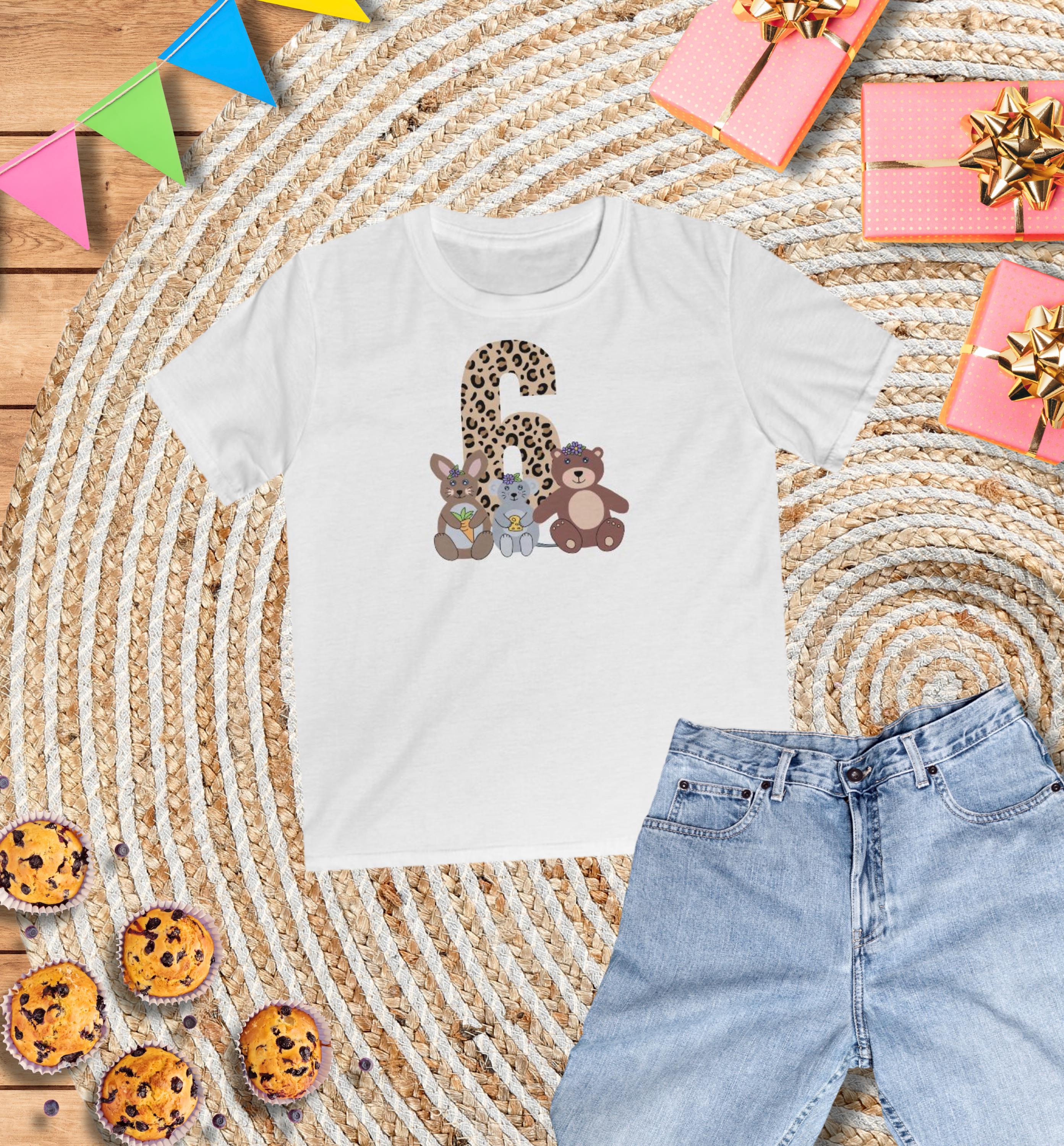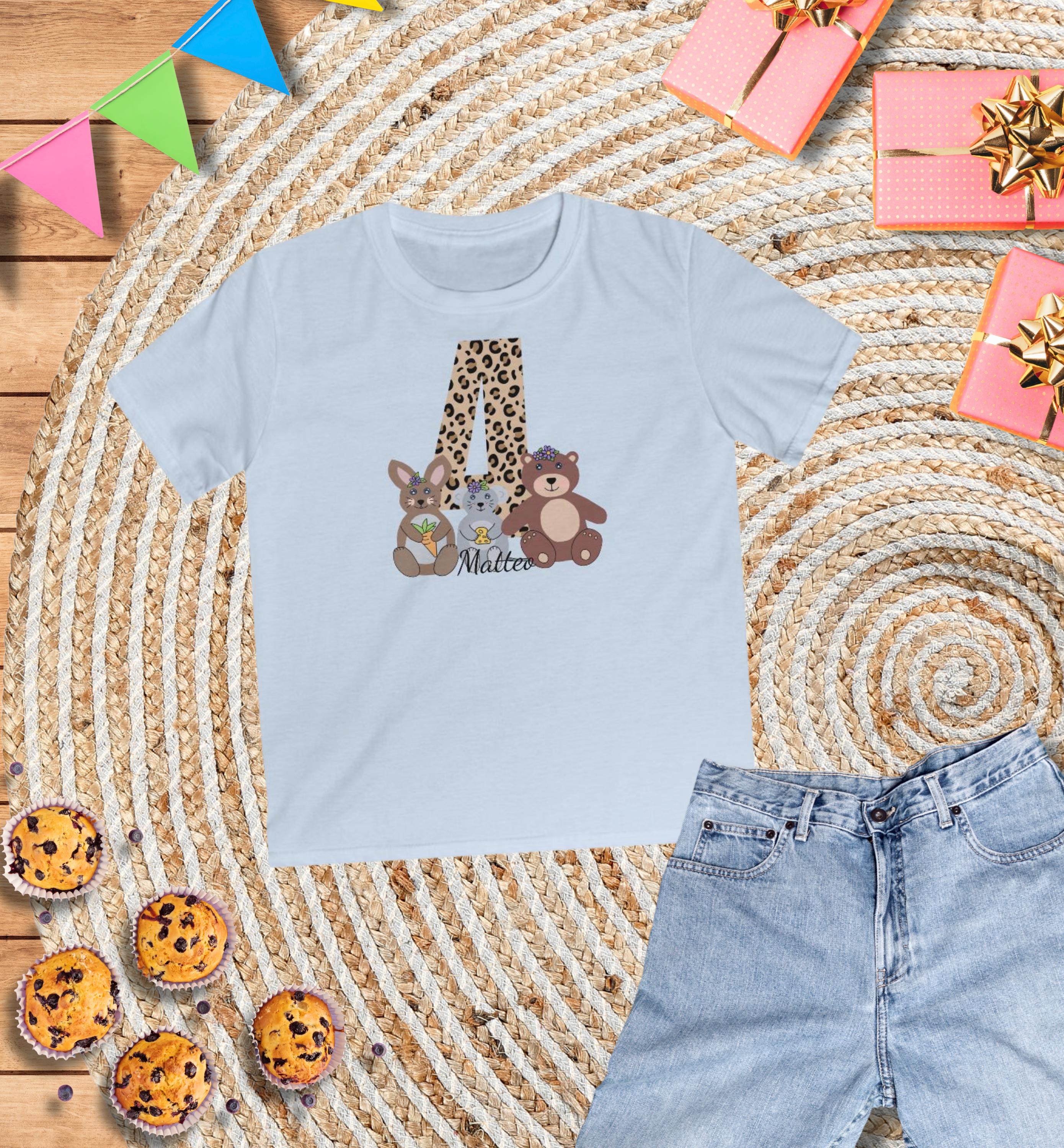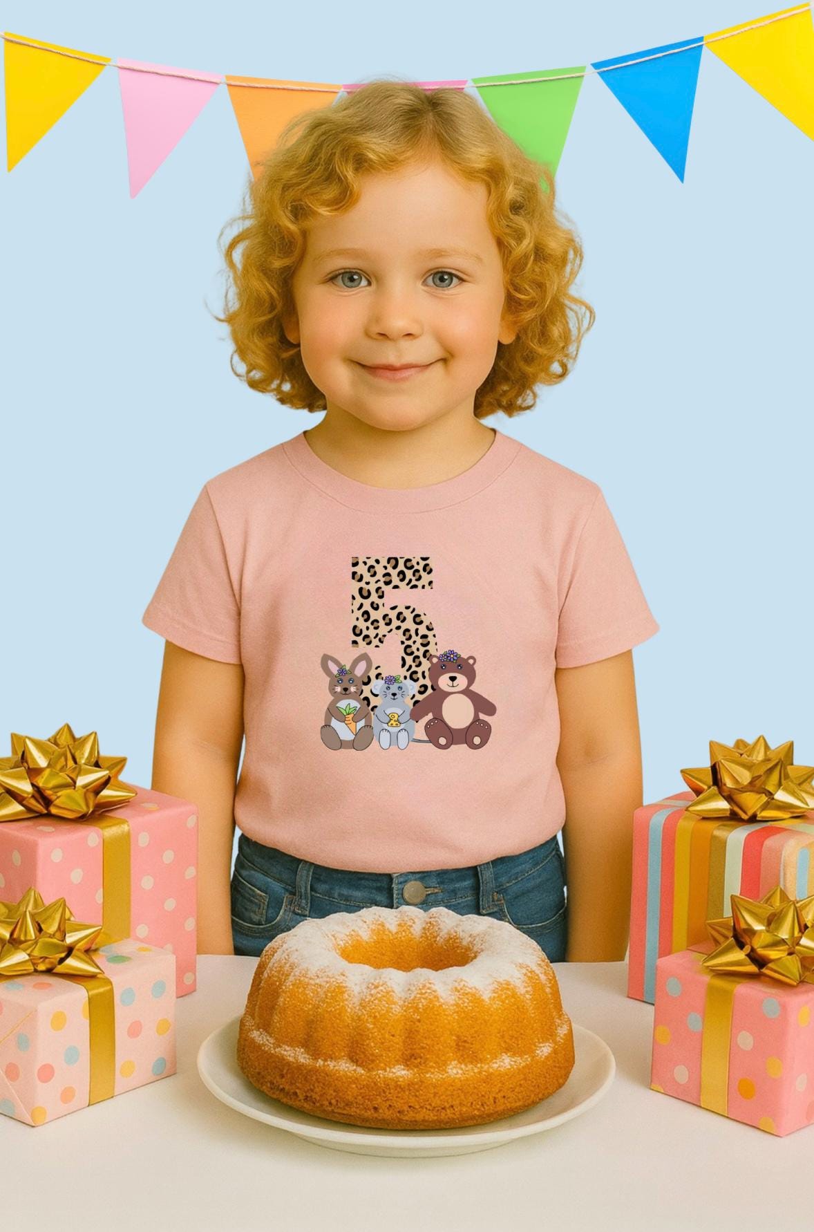 🎉 Personalisierbares Geburtstags-T-Shirt – Liebevolles Design mit Tieren & Leopardenprint 🐻🐭🐰