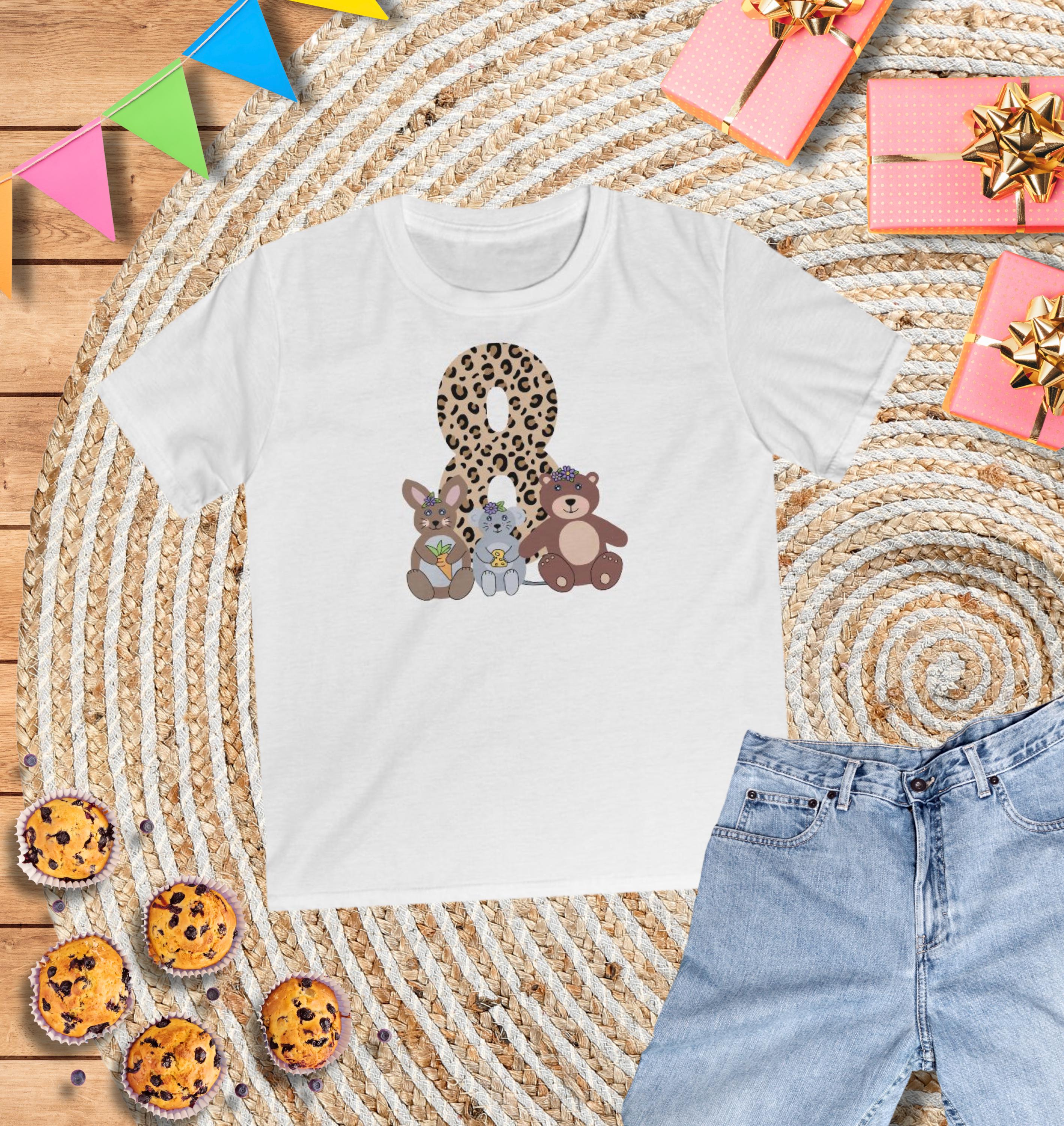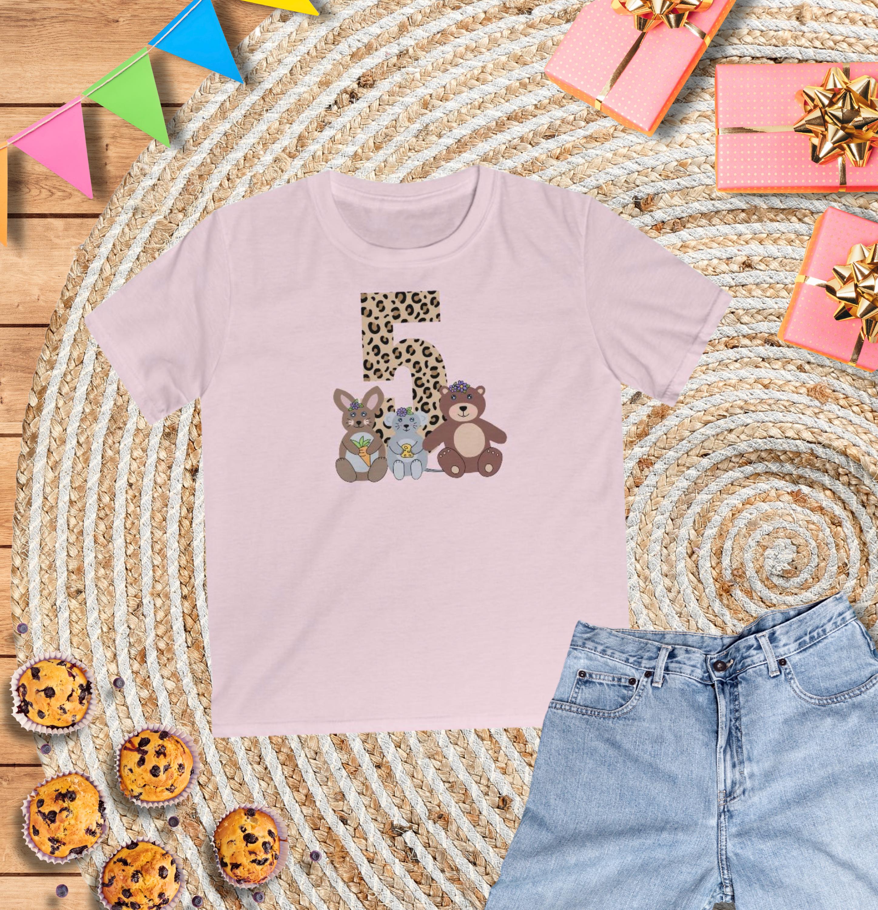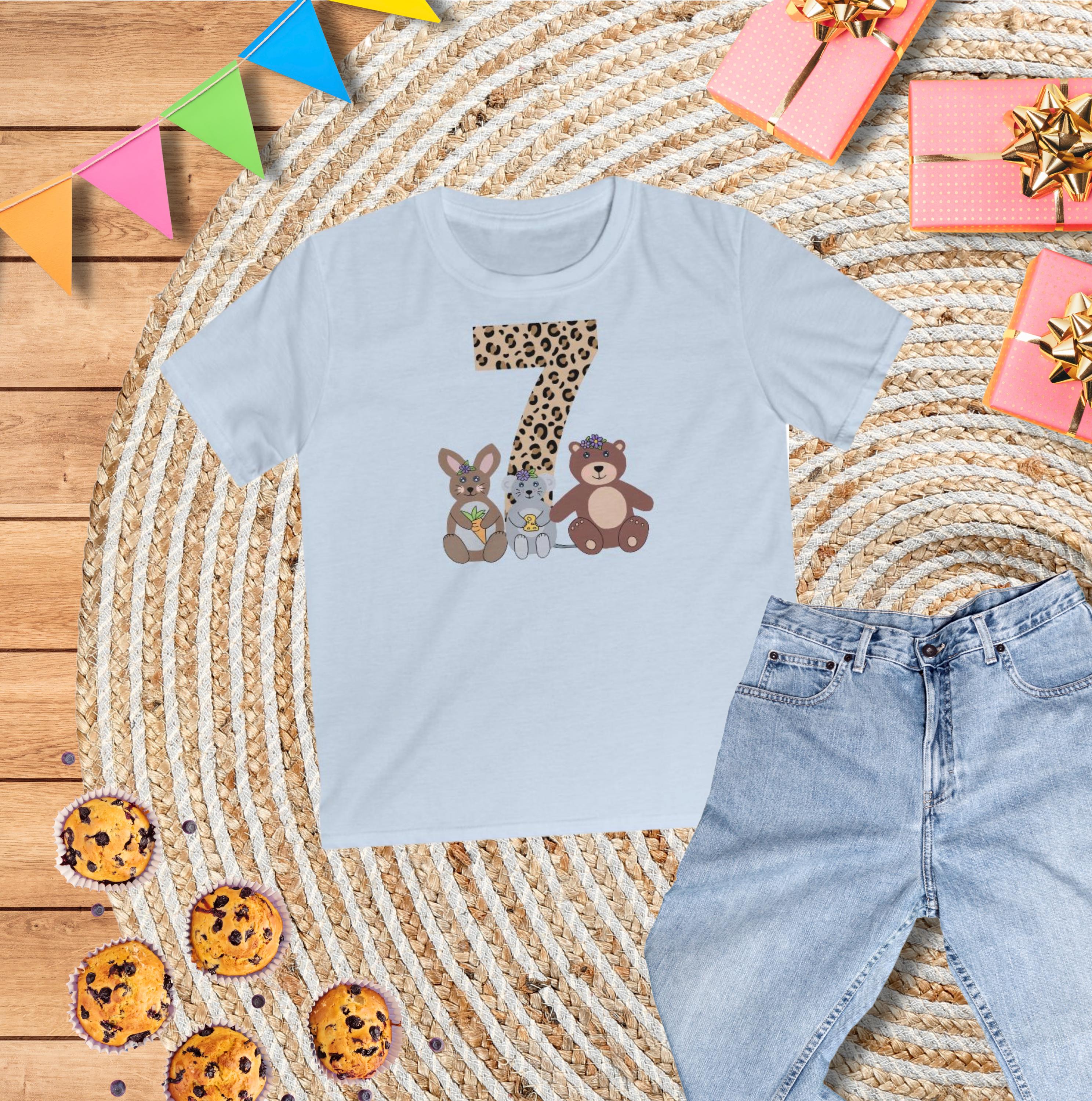 🎉 Personalisierbares Geburtstags-T-Shirt – Liebevolles Design mit Tieren & Leopardenprint 🐻🐭🐰