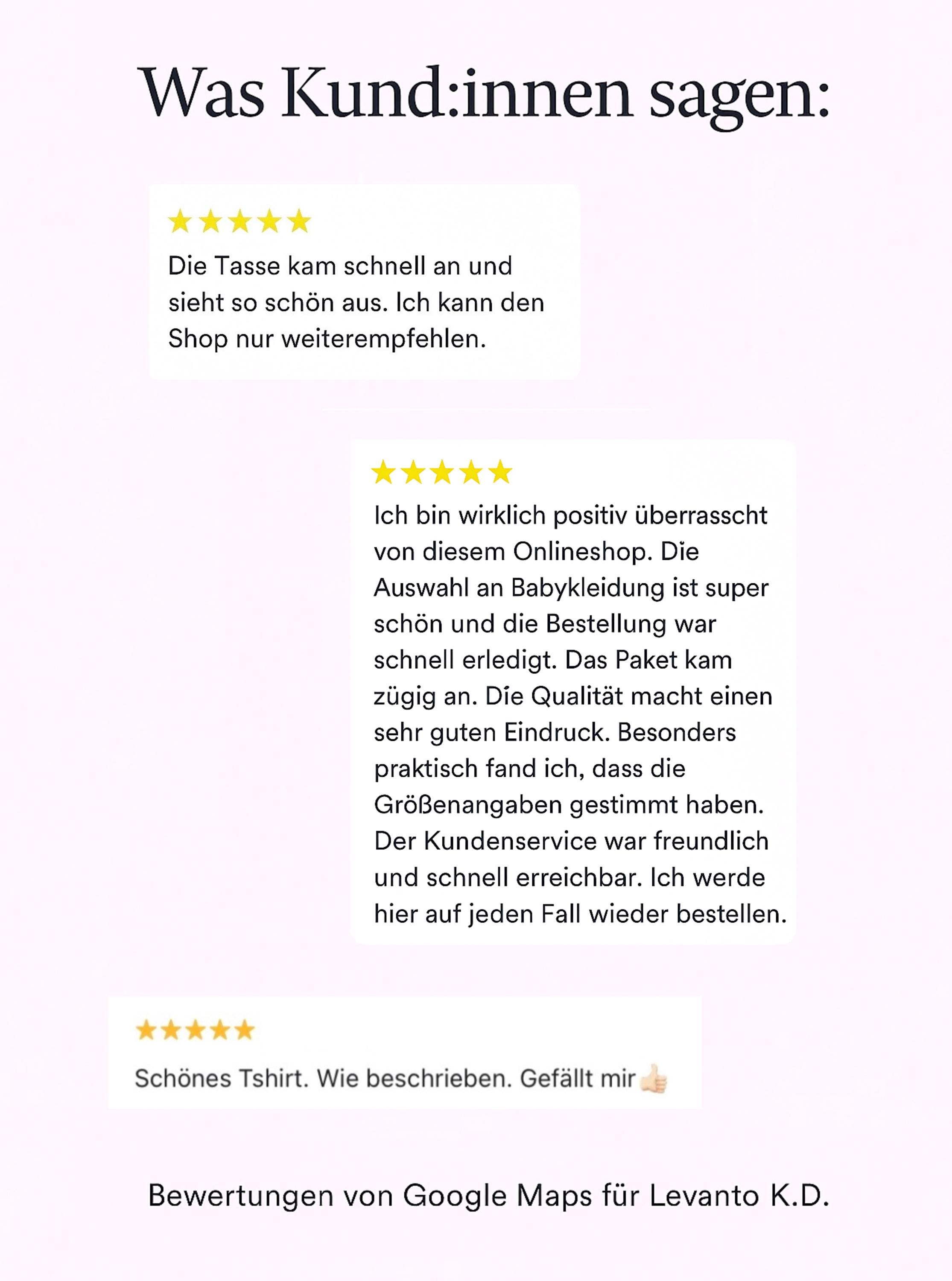 Um Ihr Widerrufsrecht auszußben, mßssen Sie uns (Kristina Durnberger Almethiab, Blumenstr. 18 a, 86850 Fischach, E-Mail: shop.levanto@gmail.com) mittels einer eindeutigen Erklärung ßber Ihren Entschluss informieren.