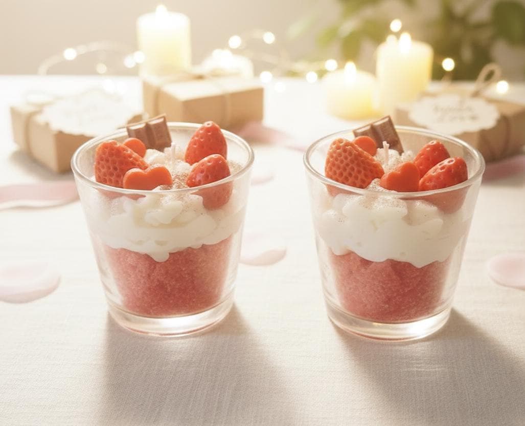 âVerwĂśhne deine Sinne mit dieser zauberhaften Dessertkerze im Glas! Mit ihren liebevoll gestalteten Details â von den täuschend echten Wachs-Erdbeeren bis hin zu den sĂźĂen SchokostĂźckchen â bringt sie romantische WohlfĂźhlatmosphäre in dein Zuhause. Ein Geschenk, das nicht nur Licht spendet, sondern auch das Herz berĂźhrt.