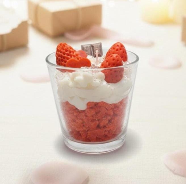 âVerwĂśhne deine Sinne mit dieser zauberhaften Dessertkerze im Glas! Mit ihren liebevoll gestalteten Details â von den täuschend echten Wachs-Erdbeeren bis hin zu den sĂźĂen SchokostĂźckchen â bringt sie romantische WohlfĂźhlatmosphäre in dein Zuhause. Ein Geschenk, das nicht nur Licht spendet, sondern auch das Herz berĂźhrt.